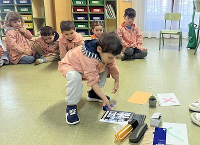 Dentro de la maleta, la princesa del cuento había metido un montón de cosas, unas se podían abrir y cerrar y otras no, los peques tenían que adivinar si el objeto que les tocaba se podía abrir y cerrar o, por el contrario, no se podía y los clasificaron dependiendo de esta característica: