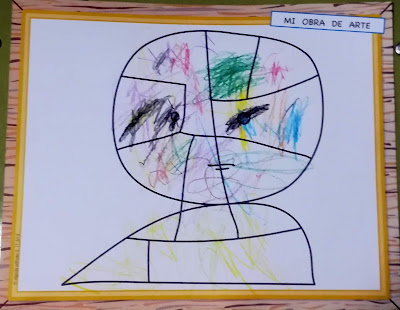Pero la actividad no acababa aquí. Aprovechando el cuadro de Paul Klee, y como ya nos sabíamos la poesía "En mi cara redondita" (adaptada de una de Gloria Fuertes), nos atrevimos a dibujar una cara, ya que al cuadro que habíamos trabajado le faltaban algunas partes...