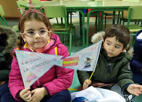 El pasado jueves 5 de diciembre les dije a "mis peques" en clase que el día siguiente, viernes, era día de fiesta, no teníamos que ir al "cole". Sabían que no había "cole" pero no sabían porqué. "¡Es el día de la Constitución!", les dije...