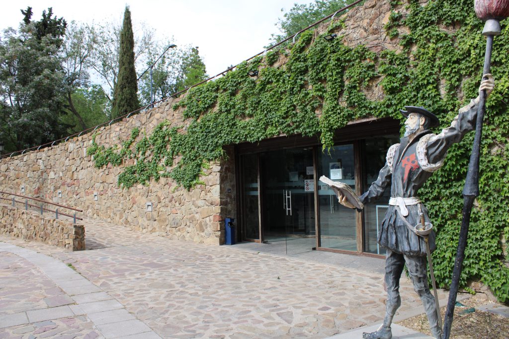 Con nuestra moneda en la mano, y siguiendo a una monitora muy simpática y agradable, que nos indicaba el camino a seguir, porque el museo es muy grande, nos encontramos con un señor, sentado, escribiendo con una pluma, que en cuanto nos vio llegar nos habló...¡menuda sorpresa! ¡Era el famoso escritor Miguel de Cervantes!, y estaba acompañado de dos figuras de don Quijote y Sancho Panza, personajes creados por él mismo...